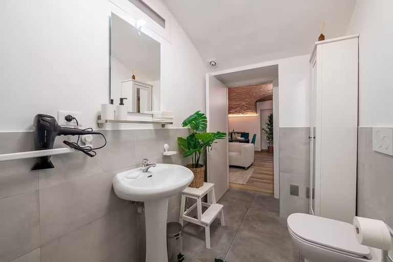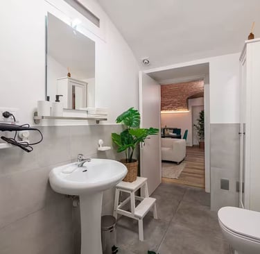 Nel loft è presente 1 bagno con ampia e deliziosa cabina doccia, dotato di sanitari, con shampoo, bagno doccia e sapone per le mani, per concludere presenta inoltre 1 confortevole tappetino e un potente asciuga-capelli.